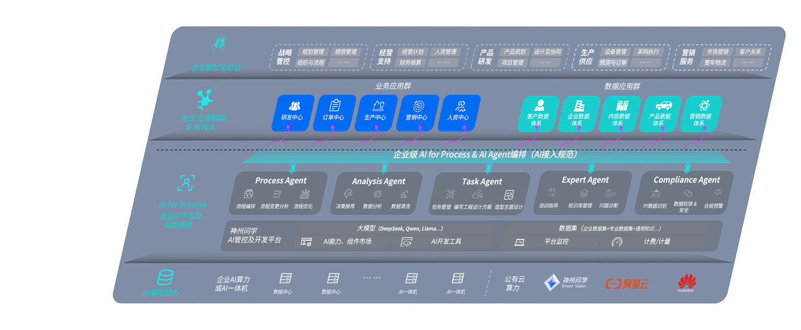 端到端的一站式AI工作空间深度融合了从企业战略规划到日常经营的全流程业务板块,,,,定向解决车企内部领域多、、、、部门多、、链条长、、、场景碎片化等难题,,,,支持车企快速构建以AI为核心的生产力写作体系,,实现任务执行与AI能力的无缝集成与交互
